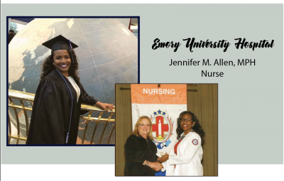 Interestingly, she was completing requirements for her master’s degree in public health when she had a chance encounter with a nurse practitioner. That moment changed the trajectory of her life. Since that meeting she became a registered nurse and is excited about the future.